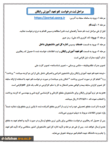امتیاز دهید : مراحل ثبت درخواست لغو تعهد آموزش رایگان برای دانشجویان اخراجی یا انصرافی 2 یکشنبه 30 مهر 1402 ساعت 14:51